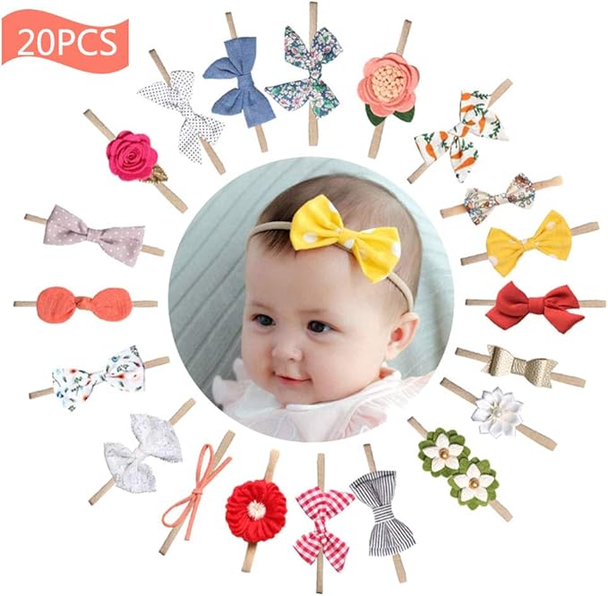 Amazon 20点セット ベビー ヘアバンド ヘアバンド ベビー ベビー髪飾り ヘアアクセサリー ヘアターバン 赤ちゃん へあアクセサリー ベビードレス フォーマル リボン セレモニー 赤ちゃん お宮参り お祝い 結婚式 ヘアゴム付 ニューボーンフォト ヘアアクセサリ