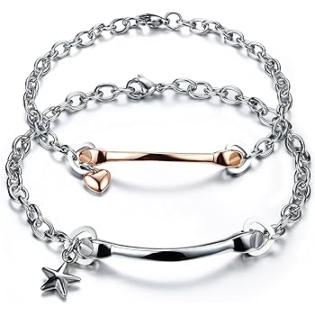 Amazon ユニーク Unique ブレスレット ペア カップル バングル ハート スター メンズ レディース カップルック2点セット シンプル ステンレススチール 腕輪 腕飾り ロマンチックなプレゼント 贈り物 バングル 通販