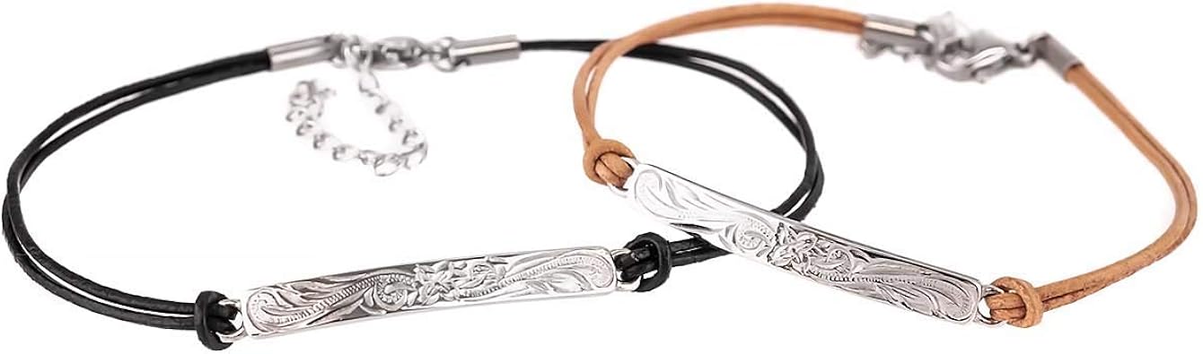 Amazon ジナブリング Jina Bring ペア ブレスレット レザー 革 サージカルステンレス316l ハワイアンジュエリー プレート 記念日 プレゼント ネーム刻印あり ブレスレット 通販