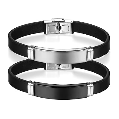 Amazon Aroncent ブレスレット レザー シンプル ステンレス ユニセックス ゴールド シルバー ブラック 刻印無料 ブレスレット ペア カップル 着脱簡単 記念日 誕生日 プレゼント カジュアル 普段使い ファション アクセサリー ブレスレット 通販