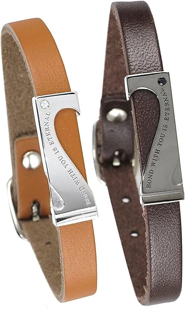 Amazon Jewelrywe ペア ブレスレット レザーパングル おしゃれ 刻印無料 ステンレスチェーン レディース ファッション アクセサリー 誕生日 記念日 バレンタインデー クリスマス 新年 プレゼント ブレスレット 通販